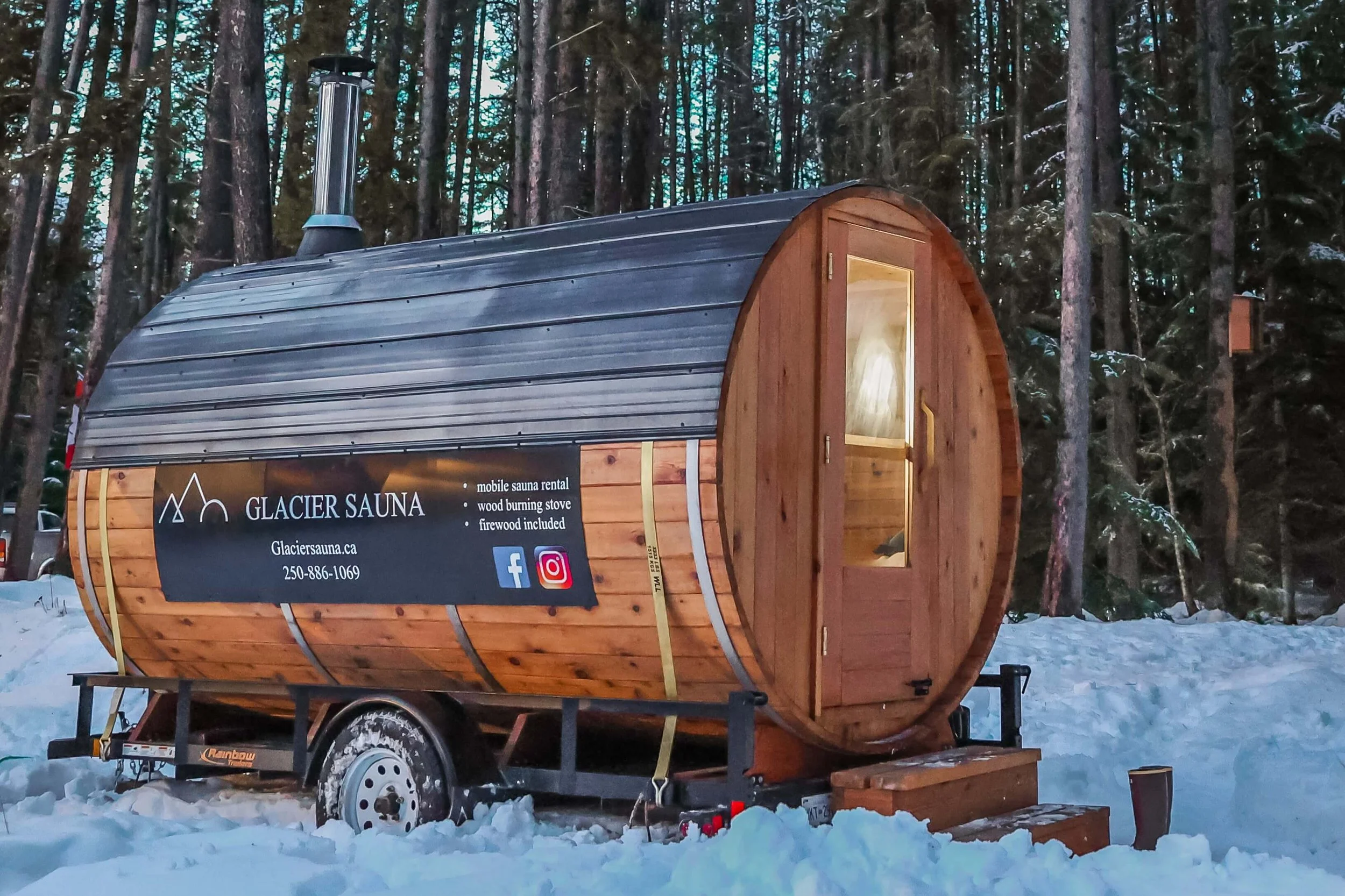 Glacier Sauna offers an authentic relaxation and wellness experience in our mobile cedar barrel sauna. Heat (lämpöä) is produced using a Finnish Harvia wood stove for a truly relaxing and rejuvenating environment. Sauna stones are supplied on the stove ready to create the traditional steam (löyly) experience. Our 12 foot sauna includes a 4 foot changeroom for privacy, lounging, sipping a cool drink, or cooling off between sessions in the hot room.